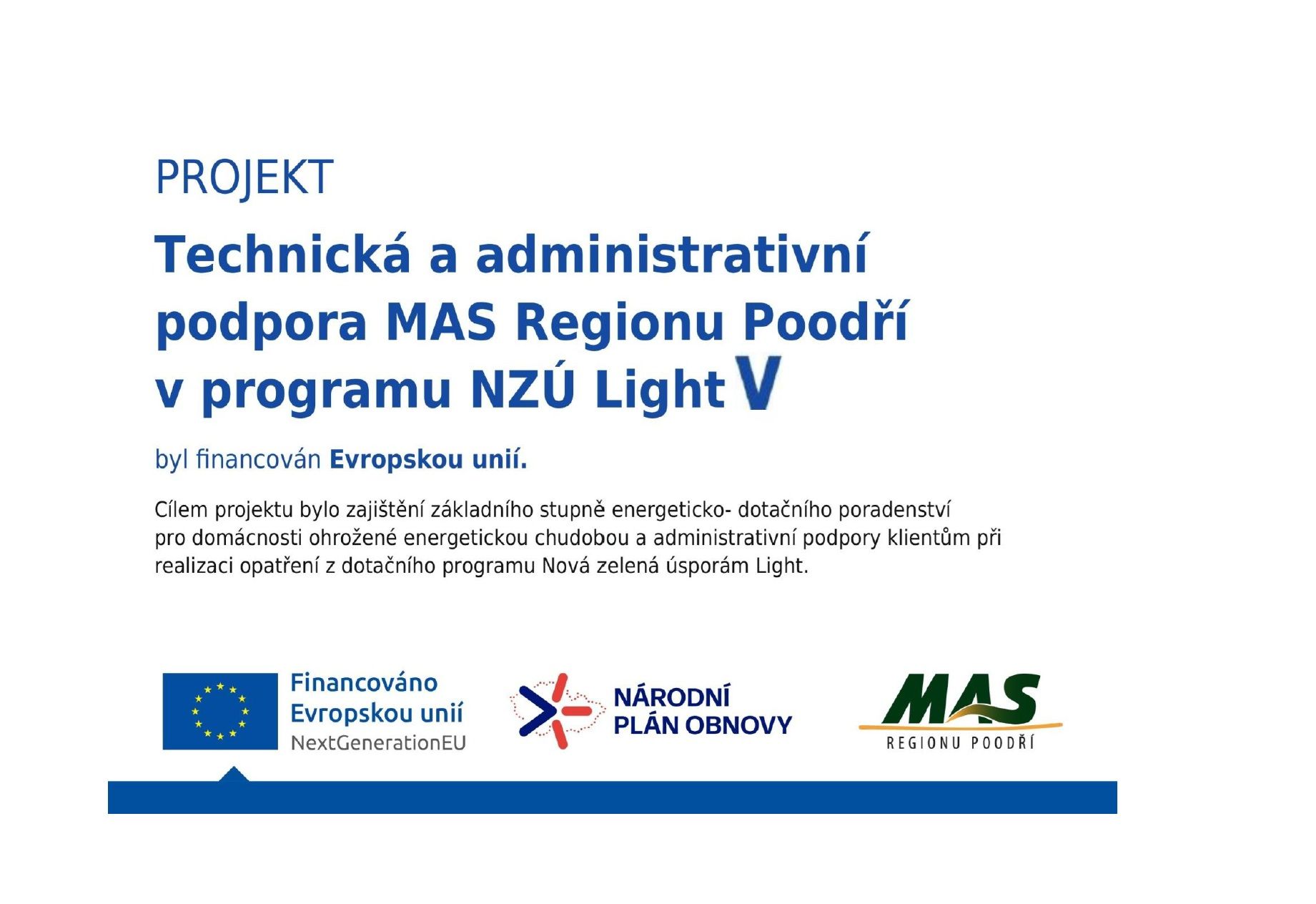 Technická a administrativní podpora MAS Regionu Poodří v programu NZÚ Light V